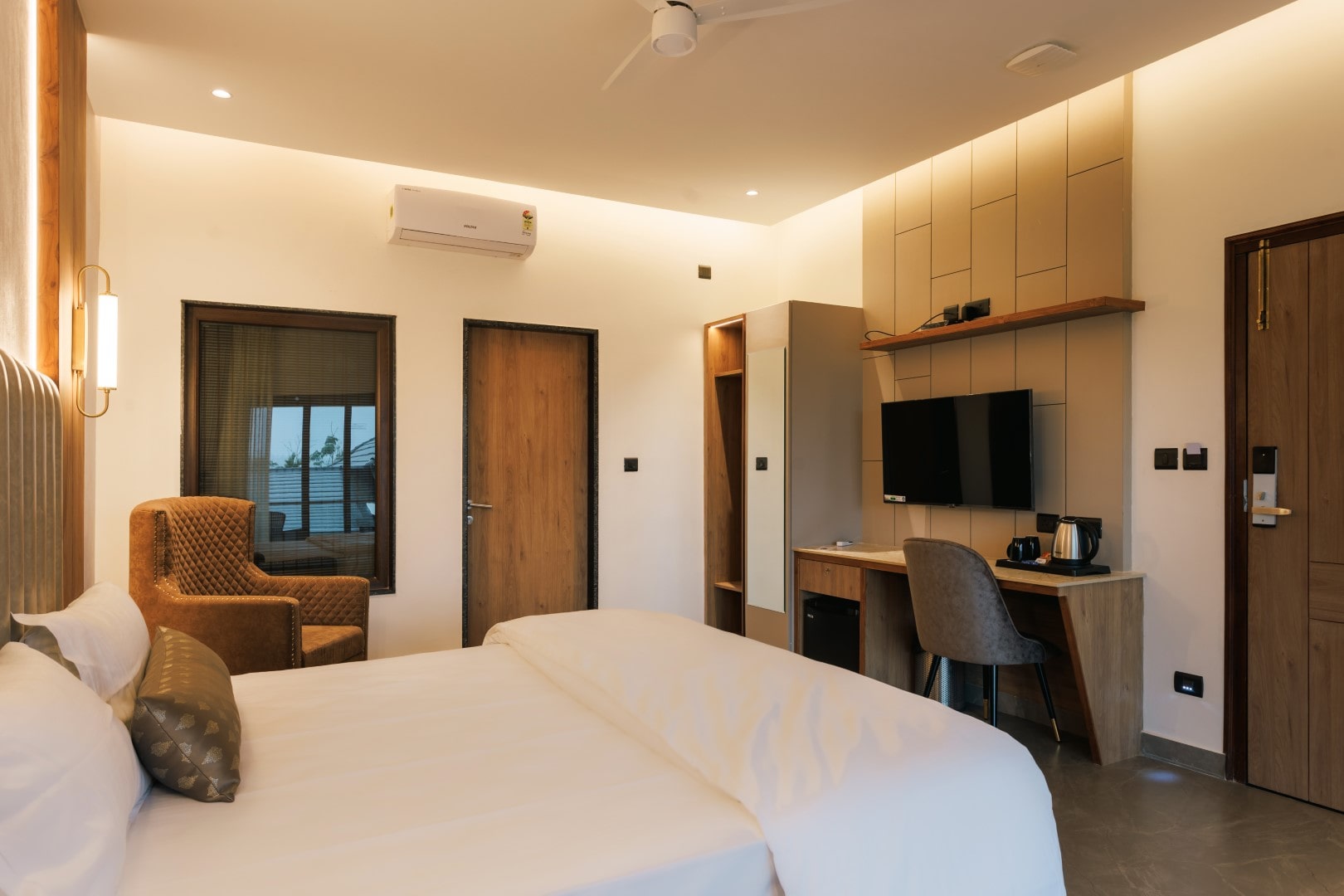 The Superior Triple Bedroom is perfect for families or friends, offering a queen-sized bed and a single bed in a spacious layout. Enjoy modern comforts, a welcoming atmosphere, and beautiful surroundings, ensuring a memorable stay for everyone.