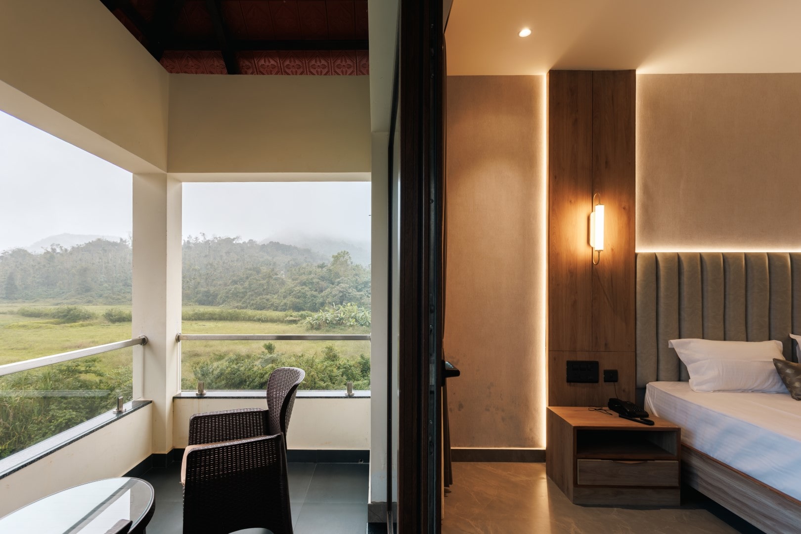 Indulge in breathtaking views in the Valley View Room, where large windows frame the stunning landscape. Enjoy a comfortable bed, elegant decor, and a peaceful atmosphere, creating the perfect retreat for nature lovers seeking serenity and inspiration